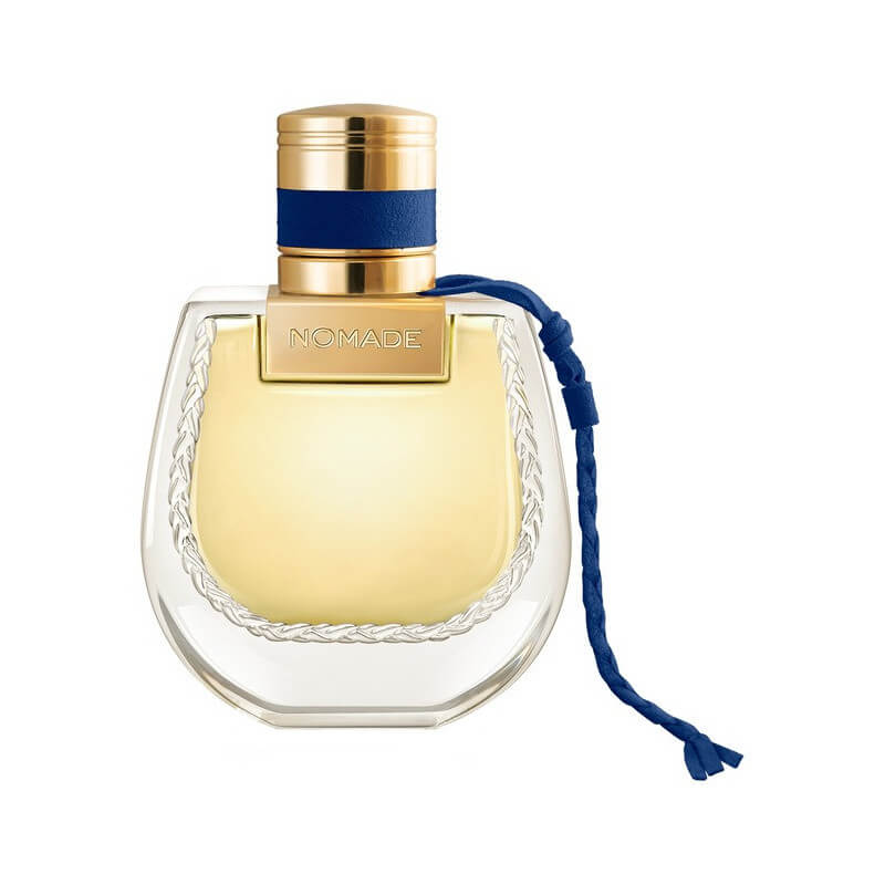 Animée par une constante envie de découverte, la Maison célèbre les splendeurs authentiques d’ici et d’ailleurs. Nomade Nuit d’Égypte fait une escale inédite et s’envole pour la première fois vers l’Égypte, pays d’origine de Gaby Aghion, la fondatrice de la Maison, afin de renouer avec ses racines. Reconnue comme le berceau de la parfumerie, l’Égypte a vu naître le premier parfum de l’humanité : le kyphi. Chloé réinterprète aujourd’hui cette précieuse alchimie dans une Eau de Parfum emblématique qui s'inscrit à la croisée des cultures. Chloé revisite le kyphi avec une écriture moderne et raffinée, créant un parfum qui nous invite au voyage dès la première inspiration. De puissants accents de myrrhe apparaissent instantanément, se mêlant harmonieusement aux notes épicées du gingembre et de la cannelle. Viennent ensuite les tonalités miellées d’un nectar de fleur de genêt et les nuances tout en rondeur, balsamiques et ambrées du cypriol et de l’opoponax. Au cœur de l’Eau de Parfum pour femme Nomade Nuit d'Égypte, les notes exquises de kyphi sont associées à un absolu de fleur d’oranger venu d’Égypte. Enfin, une touche de vanille, chaleureuse et sensuelle vient parachever cette envoûtante Eau de Parfum formulée aec un parfum à 90 % d’origine naturelle. Le flacon iconique de cette ligne de parfums Chloé se pare d’une tresse, nouée à son col, d'une couleur inédite : un bleu profond, teinté de mystère. C’est le fameux « bleu égyptien ». Reflet des engagements de Chloé, le packaging intègre des matériaux recyclés : 15 % du verre du flacon et 40 % du carton de l’étui qui est, par ailleurs, certifié FSC.