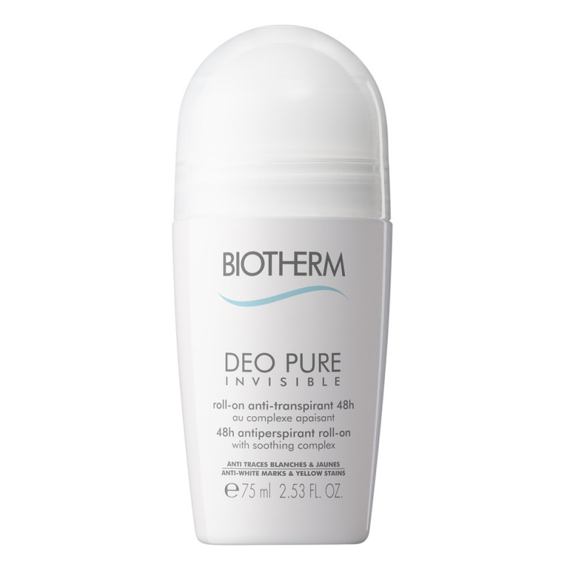 Biotherm Déo Pure Invisible Roll-On Anti-Transpirant 48h 75 ml au complexe apaisant est un déodorant anti-transpirant efficace pendant 48h. Il convient pour toutes les peaux, même les plus sensibles. Invisible, il ne laisse ni traces jaunes ni traces blanches après application. La peau est protégée, parfumée d'un parfum frais et floral.