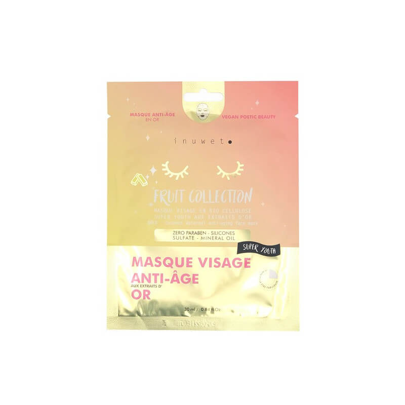 Masque Visage Anti Age Fruit Collection Extraits D'Or Masque visage en bio cellulose de Inuwet