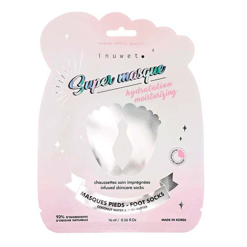 Notre masque pieds en forme de chaussettes est imprégné d'actifs hydratants et de vitamines pour apporter un soin ciblé, totalement adapté aux pieds.