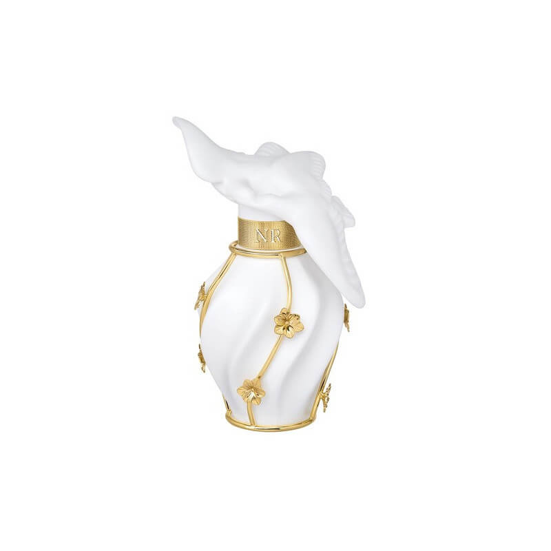 Anne Brun et son savoir-faire exceptionnel dans l'art de la dorure ont permis une réinterprétation unique de L'Air du Temps de Nina Ricci. Entouré d'une délicate cage aux fleurs dorées, détails signatures de l'artiste, et lacqué d'un blanc mat, le flacon devient un véritable objet d'art.