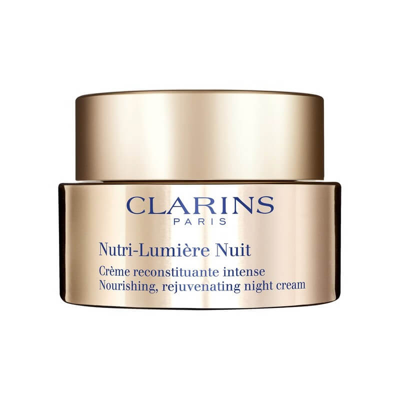La crème de nuit reconstituante intense anti-âge Nutri-Lumière de Clarins est le complément idéal de Nutri-Lumière Jour, pour une peau nourrie, revitalisée et lumineuse au réveil.