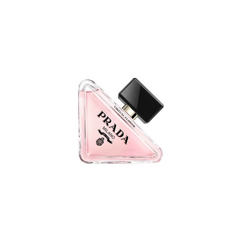 Inspiré du logo triangle iconique de Prada, le flacon Paradoxe Virtual Flower, minimal et délicat, est conçu de manière disruptive pour reposer sur le côté.